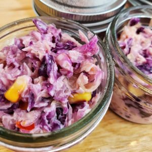 Fresh cabbage, red cabbage & sweet corn with a light creamy dressing