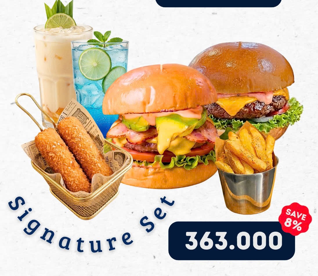 1 Cheese Burger, 1 Summer Beach Burger, 1 Medium Fries, 2Pcs Cheese Stick, 2 Drinks with your choice